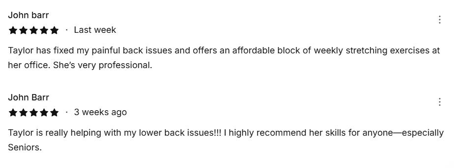 333flow/T services are designed for educational and wellness purposes only. I am a certified stretch coach and yoga instructor — not a licensed physical/occupational therapist, chiropractor, or medical provider. My sessions do not diagnose or treat medical conditions. Please consult your healthcare provider before beginning any new movement program.